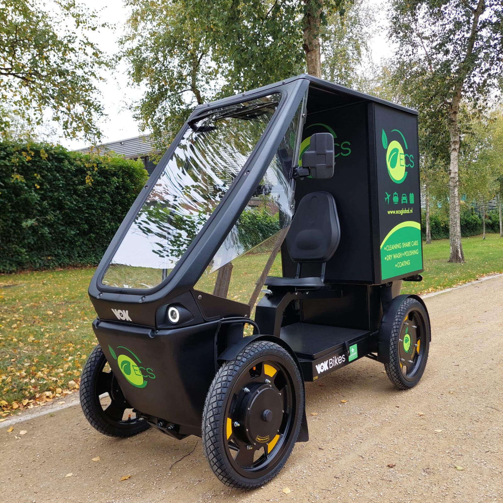 4 wielen en een fijne bescherming tegen de elementen. Toch heb je alle voordelen van een e-bike en kun je bijna 1000 liter kwijt in de bak